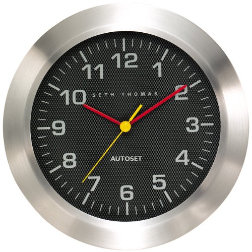 Seth Thomas Indy Silver Tone Matte Metal Case with Black Carbon Fiber Dial Auto Set Wall Clock Reviews