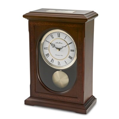 One look at this classic, stately clock and it's easy to see it as a permanent fixture of a home's decor. At first beautifully simple, it's perfectly designed and alive with accents. The American hardwood case is finished with a lustrous oak stain and features subtle stepped trim. A trompe l'oeil border adds depth around the elegant oval front window, capped by the vintage Roman numeral dial. All it needs is a personalized engraving to complete an heirloom gift they'll always remember.-Includes 4/4 Westminster-Whittington chimes.-A great gift for business recognition, awards, retirements and life milestones. Engraved Gift.